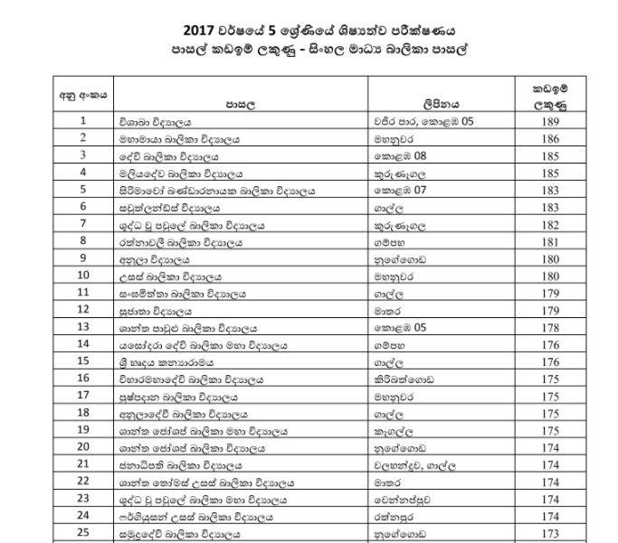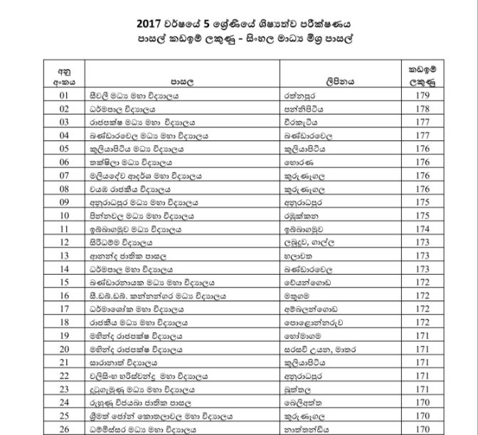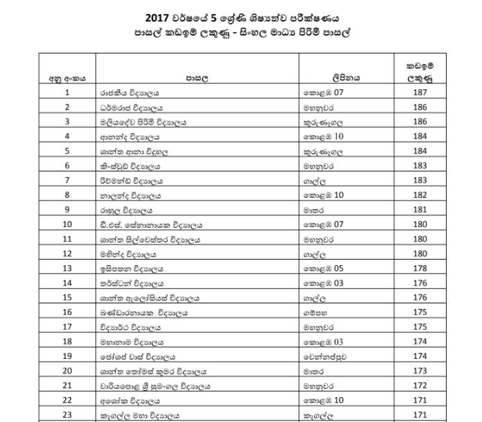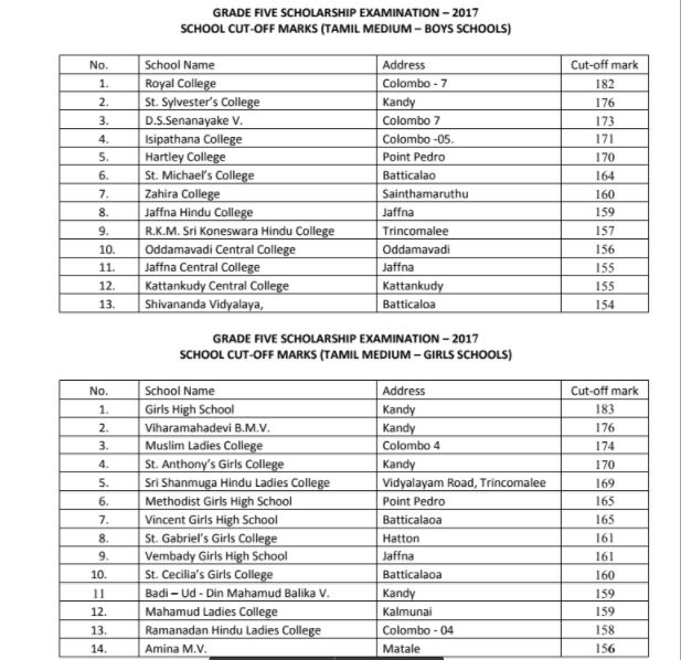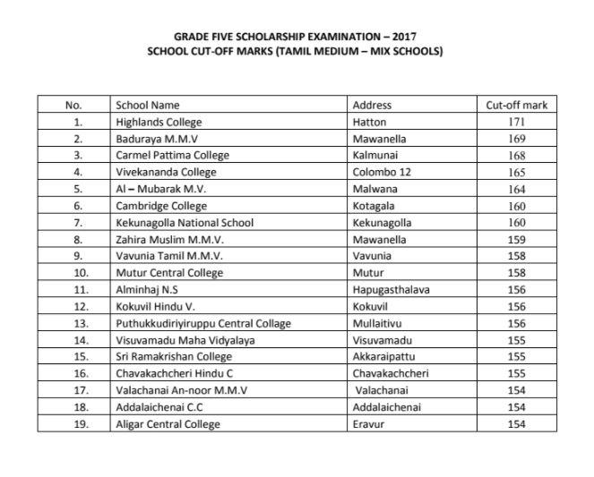 The cut-off marks of 2017 Grade 5 scholarship examination has been released.