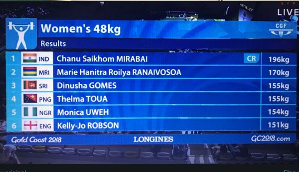 India’s Chanu Saikhom Mirabai took gold in the event.