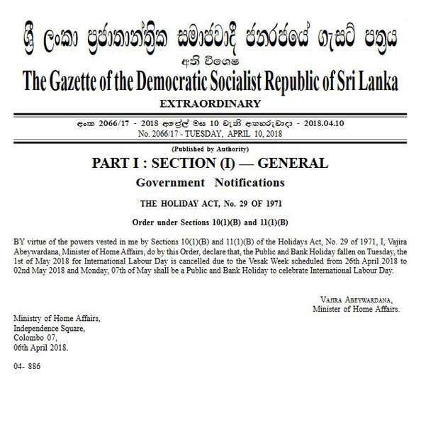 The Public and Bank Holiday on May 1 had been cancelled and May 7 has been declared as the Public and Bank holiday instead.