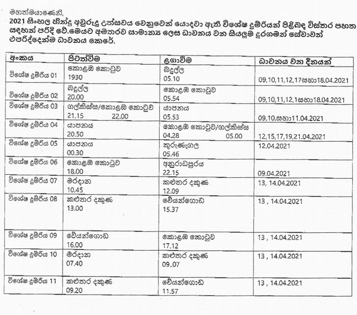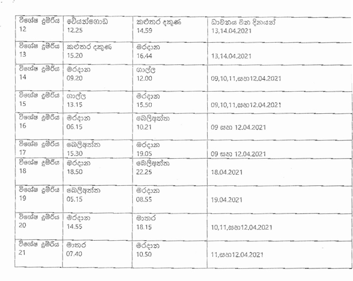 Special trains for festive season from FridayNews EditorApr 5, 2021(FASTNEWS | COLOMBO) – Additional trains scheduled from 09 to 21 April for the forthcoming festive season by the Sri Lanka Railways. Train schedule is as follows;