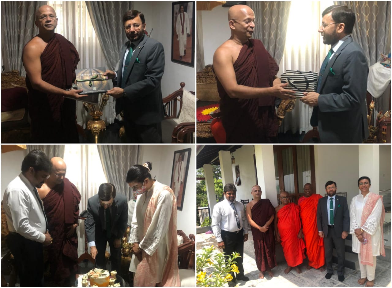 Later on, both discussed the historic relations between Pakistan and Sri Lanka and ways to further strengthen people-to-people contacts. They also underscored the importance of interfaith harmony and pluralism especially in multi-ethnic and multi-religious countries like Sri Lanka. The High Commissioner apprised him of the proposed Buddhist Heritage Trail of the Government of Pakistan which was well-appreciated by the Venerable Thero. They also spoke about the precious relics of Lord Buddha preserved in Pakistan which are a source of great reverence for Buddhists. Both stressed on the need for these relics and Gandhara Buddhist heritage sites to be made more accessible to Sri Lankan pilgrims through regular visit of Sri Lankan pilgrims to Pakistan.